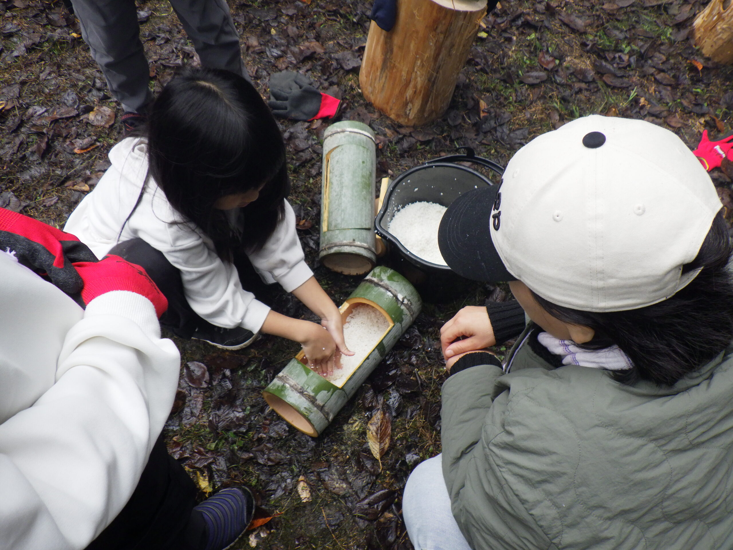 現地では、竹の食器づくり、食事の準備と炊飯、山林とその周辺での子どもの自由意思に基づく遊びを行いました。本学からの参加者は、これらの活動の支援と安全管理を行いつつ、子どもとのふれ合いを楽しみました。